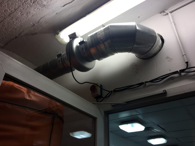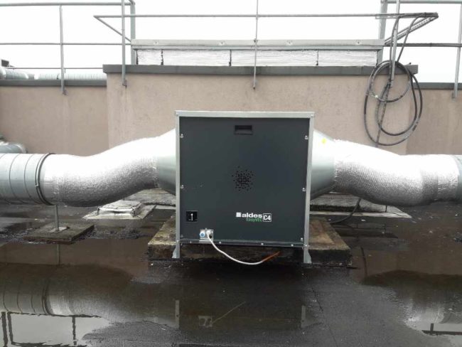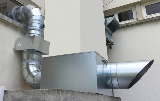Cuisine collective installation système d’extraction d’air en zone laverie avec son système de compensation d’air neuf